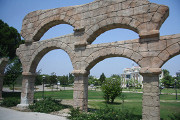 Амфитеатр Аспендоса, что в 18 км от Белека, прекрасно сохранился. По его гигантским размерам можно судить, насколько велик был этот город в античные времена. Сегодня на 2000-летней сцене по-прежнему ставятся спектакли и идут концерты. За амфитеатром ниже по склону горы разбросаны руины агоры, терм и базилики. А внизу на равнине виден самый большой в Анатолии акведук, «сработанный еще рабами Рима».