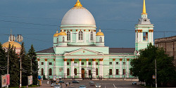 Трехэтажное красно-белое здание в историческом центре Курска, известное как Дом дворянского собрания, — одно из самых известных сооружений города. Построенное во второй половине 19 века, оно выполнено в необычном для Курска стиле эклектики: с чертами ренессанса и многочисленными отсылками к барокко.Знаменский кафедральный собор в Курске