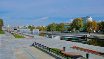 С моста через Исеть открывается удивительно удачный ракурс на здание штаб-квартиры «Русской медной компании», построенной по проекту архитектурного бюро сэра Нормана Фостера. Неофициально творение британских архитекторов именуют в городе ананасом.