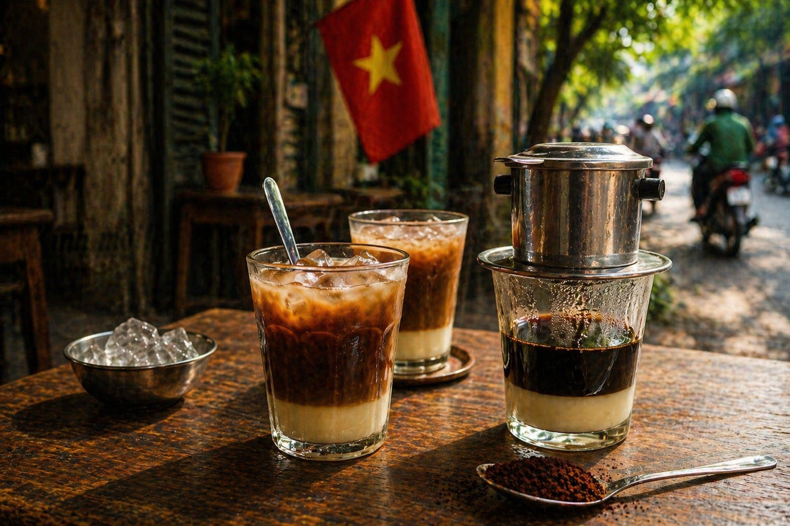 - ка фе суа да — кофе со сгущенным молоком, сладкий и крепкий, часто со льдом;