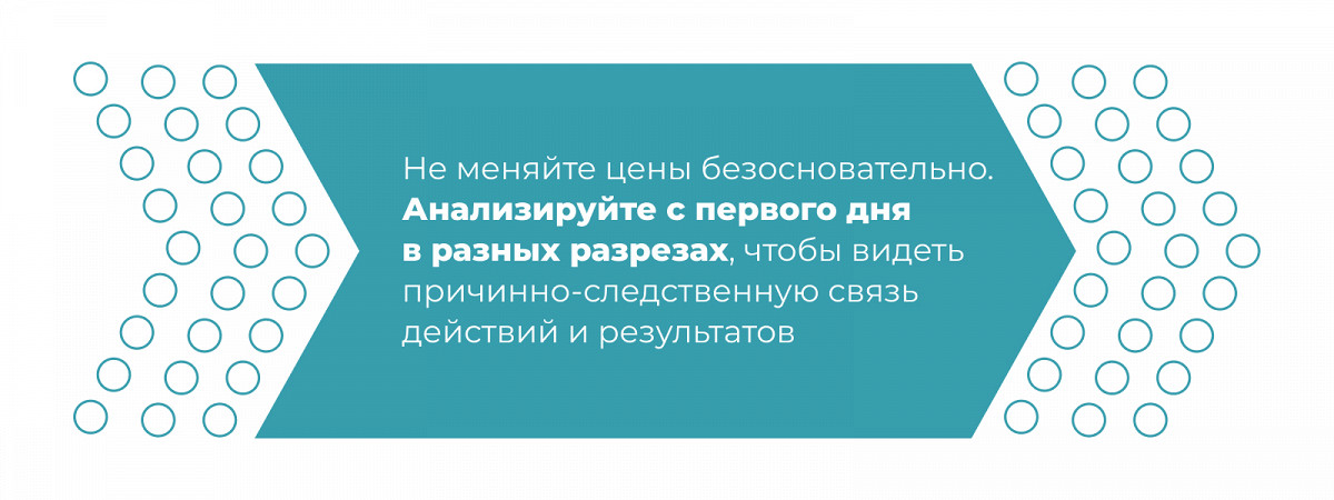 Не стоит менять цены безосновательно. Важно собирать данные с первого дня работы и анализировать их в разных разрезах, чтобы понимать, какие действия привели к каким результатам.