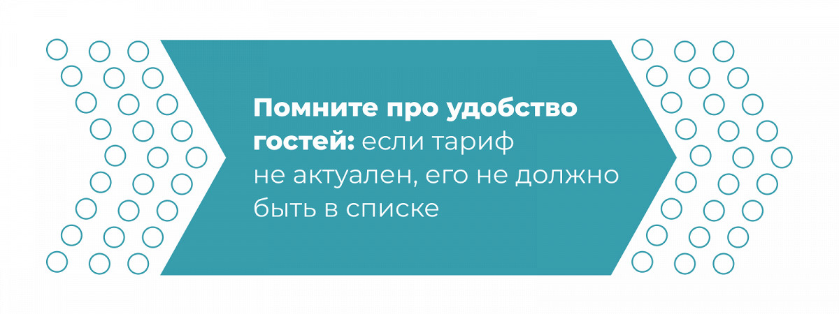 Гостю должно быть удобно. Если тариф уже не актуален, его не должно быть в списке. Например, проверяйте тарифы после новогодней ночи, чтобы они не отображались все январские праздники.