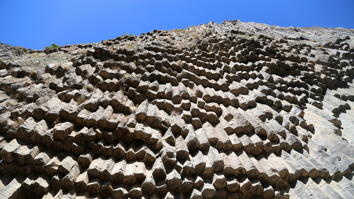 Если проехать ниже по течению реки Азат, можно увидеть еще одно чудо – Симфонию Камней. Это огромные базальтовые столбы правильной шестигранной формы, которые нависают над землей, напоминая трубы гигантского каменного органа. Их создала не рука человека, а медленно остывающая вулканическая лава.