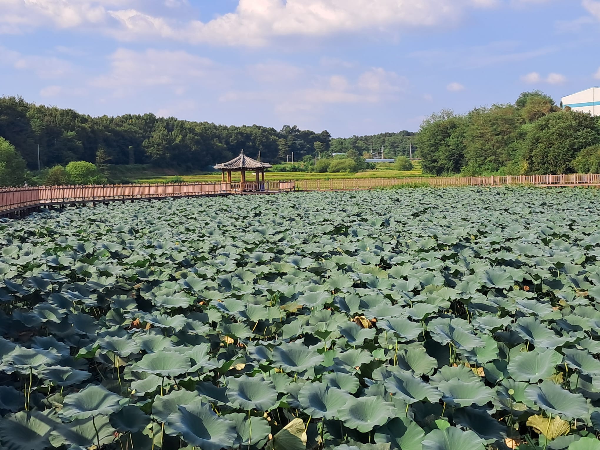Они живут тут уже около 10 лет. Вместе мы поехали в небольшой провинциальный городок Токсан, по пути разглядывая окрестности. В городе очень много небоскребов, в Корее их называют апатами. Природа удивительная: вокруг рисовые поля, горы, на каждом свободном участке земли что-то выращивают. Сельское хозяйство очень развито: по дороге мы встретили много теплиц, в которых выращивали арбузы, дыни, кабачки, баклажаны, острый жгучий перец, виноград.