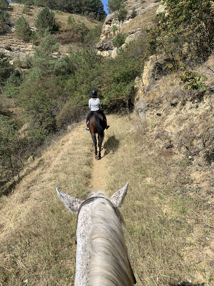 На второй день мы оставили ребенка с бабушкой и отправились на конную прогулку. База отдыха находится между Ессентуками и Кисловодском. Плюс КМВ в том, что все города близко, дорога занимает в среднем 30–60 минут, основной транспорт — электричка. Стоит немного, доставляет быстро. В данном случае пришлось ехать на такси. Сама прогулка понравилась, хоть и было страшновато: поднимались в гору, временами узкими дорожками, зато вид был прекрасный. За час заплатили около 500 RUB за человека.