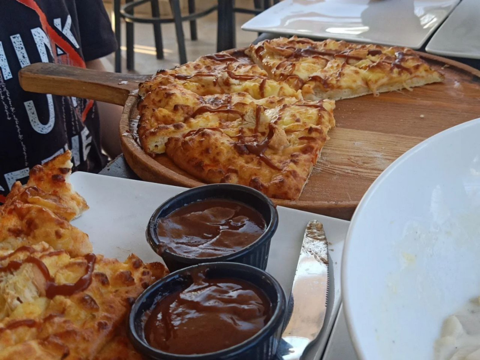 Бар на пляже — напитки и снеки с 10:00. Мы проводили там полдня: загорали, купались. Вода теплая, +28 °C, волн почти нет. Минус — иногда медузы, но нас не ужалили.
