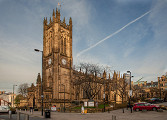 В исторической части города стоит посетить кафедральный собор — собор с самой широким во всей Англии фасадом и богато украшенными хорами, и ратушу — прекрасный образец неоготической архитектуры; Университет Манчестера — здесь было положено начало науке радиоастрономии и открыт элемент ванадий; Публичную библиотеку Джона Райлэндса — здесь хранится фрагмент самого древнего из известных Евангелий — Евангелия от Иоанна, которое было найдено в Александрии и датируется первой половиной II века н. э.; церковь Св. Анны — находится в тихом уединенном уголке Манчестера, по субботам здесь часто проводятся свадьбы.