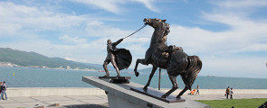 Удивительно, но в Новороссийске очень много памятников, подчас весьма оригинальных, которые и раскрывают нам непростой, но определенно интересный характер города. Разумеется, большая их часть посвящена морю — это и стела Морской славы, и трогательный памятник Женам моряков, и памятник Неизвестному матросу, а также всевозможные дельфины и якоря. Особое внимание стоит уделить исключительно трагической странице истории России, связанной с Новороссийском, — исходе Белой армии со своей охваченной «красной заразой» родины на чужбину. Мемориал так и называется — «Исход». Легко узнается и персонаж Высоцкого из знаменитого фильма «Служили два товарища»: тот самый разрывающий сердце момент, когда белый офицер оставляет на русском берегу своего коня.