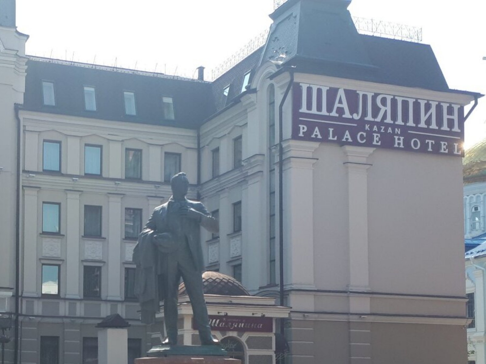 В итоге выбрали «Шаляпин Палас Отель», номер в котором я забронировала на официальном сайте. Да, по отзывам и фото я понимала, что он не будет идеальным вариантом для нас, но пришлось расставить приоритеты. Мои были — приемлемый сервис при отличном расположении. А расположение у него просто шикарное: на улице Баумана, где все рядом, с утра и до темноты там выступают артисты, музыканты; множество мест, где поесть; есть магазины и сувенирные лавки, музеи и места просто посидеть, отдохнуть. Кроме того, многие групповые экскурсии начинаются именно здесь, не надо добираться до места сбора.
