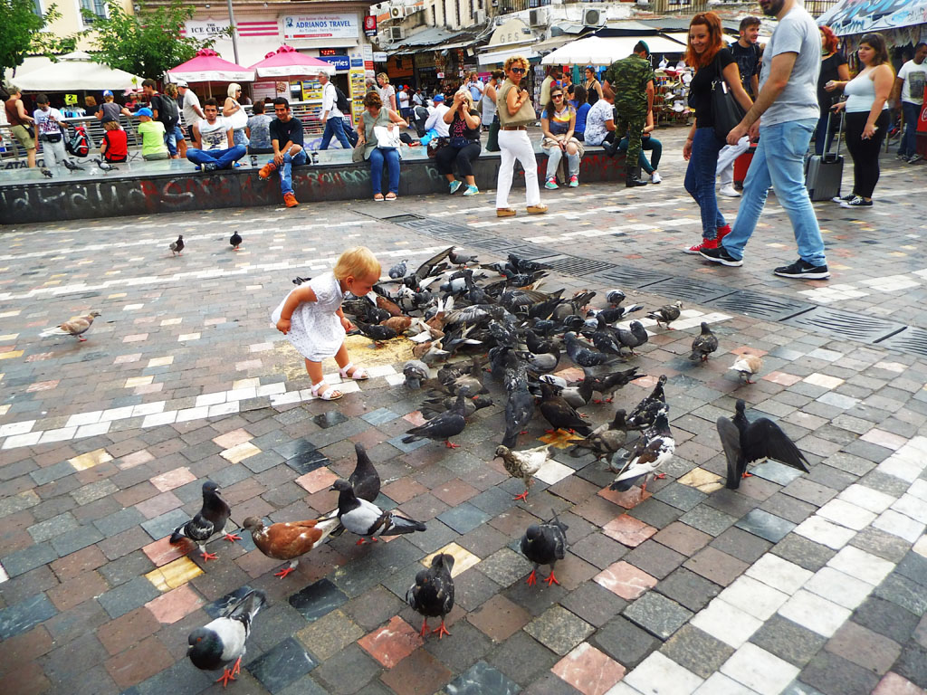 Малышка и голуби на площади Монастираки в Афинах Даниил Марченко