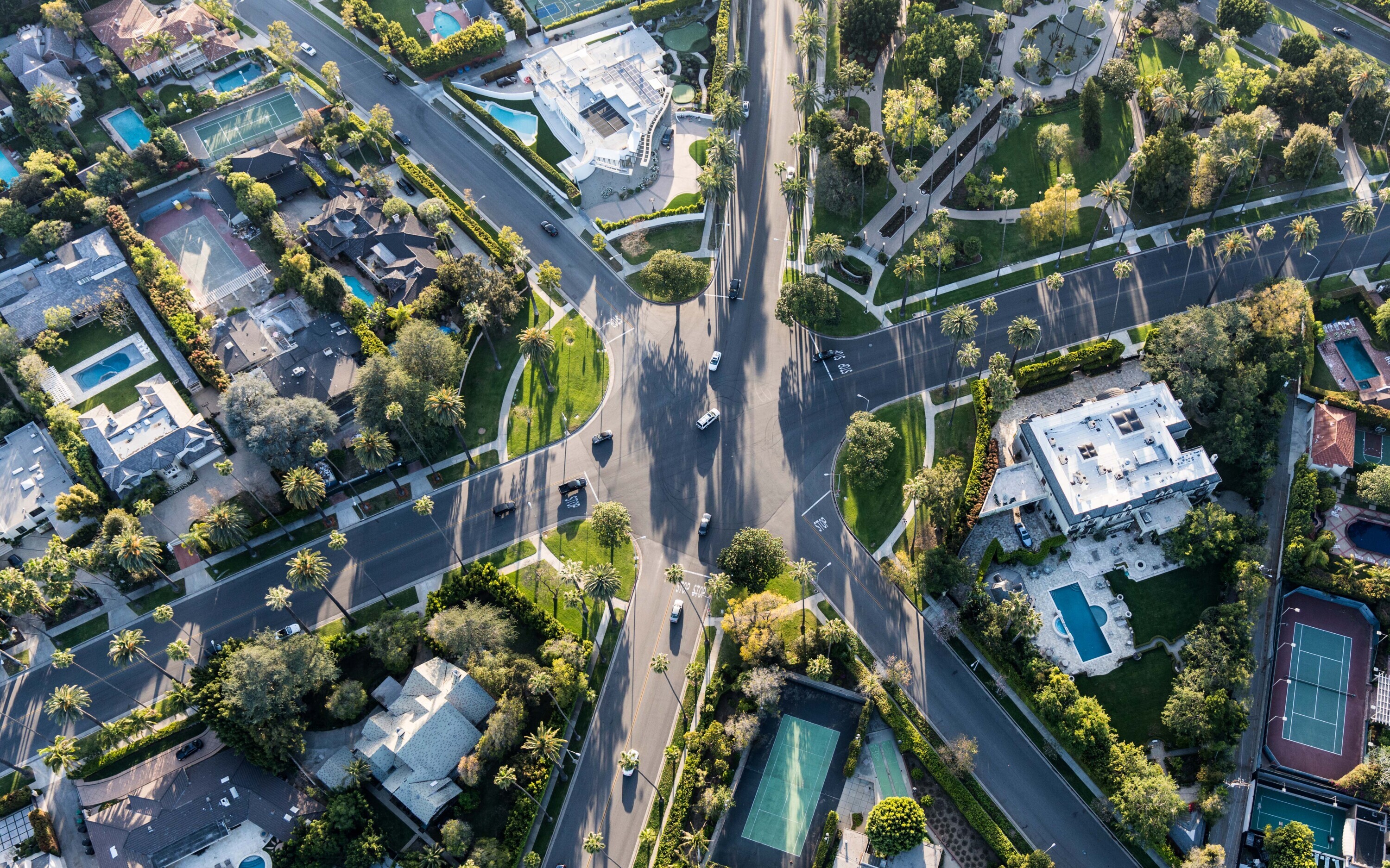 Беверли-Хиллз, США, вид с воздуха на перекресток шести дорог