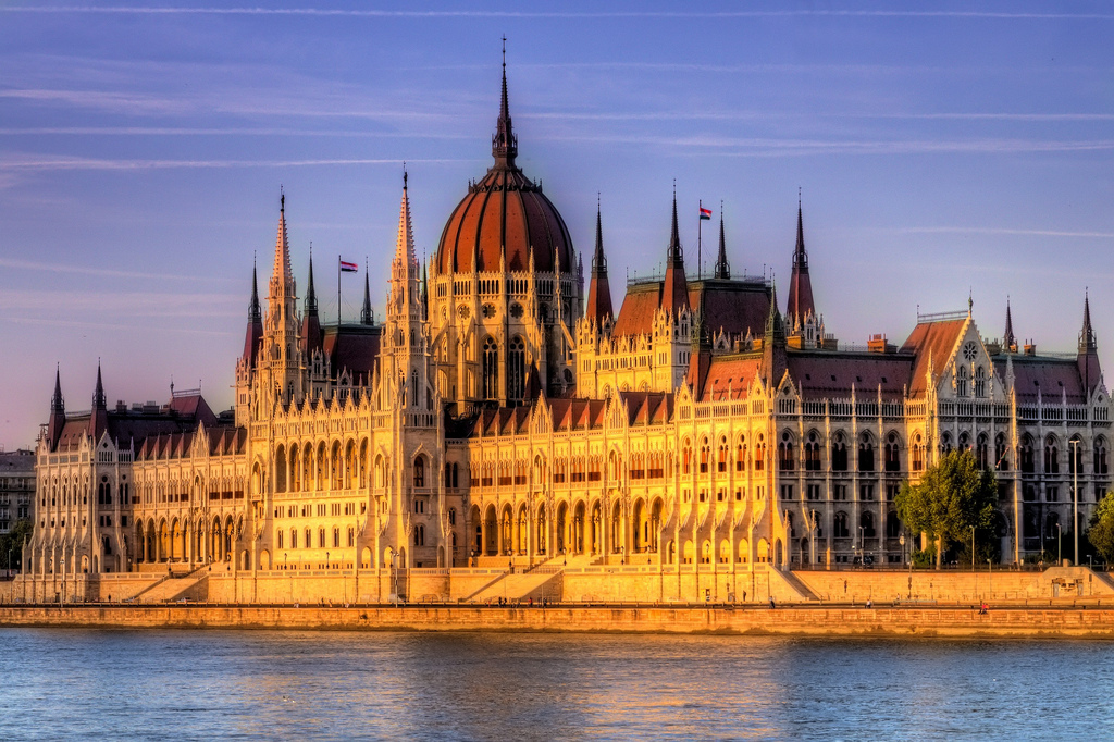 Здание венгерского парламента в вечернем освещении David Spigiel, Wikimedia
