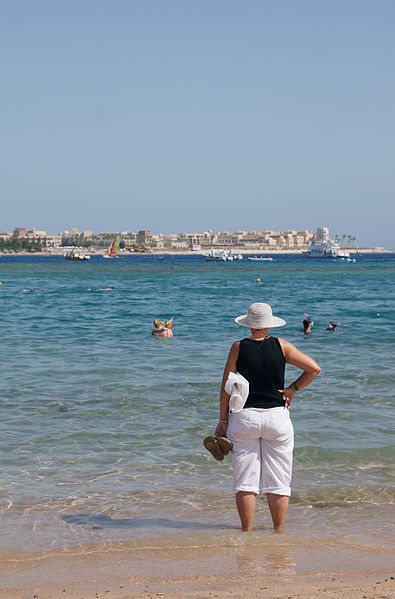 Туристка на пляже в Макади-Бей user Kallerna, Wikimedia
