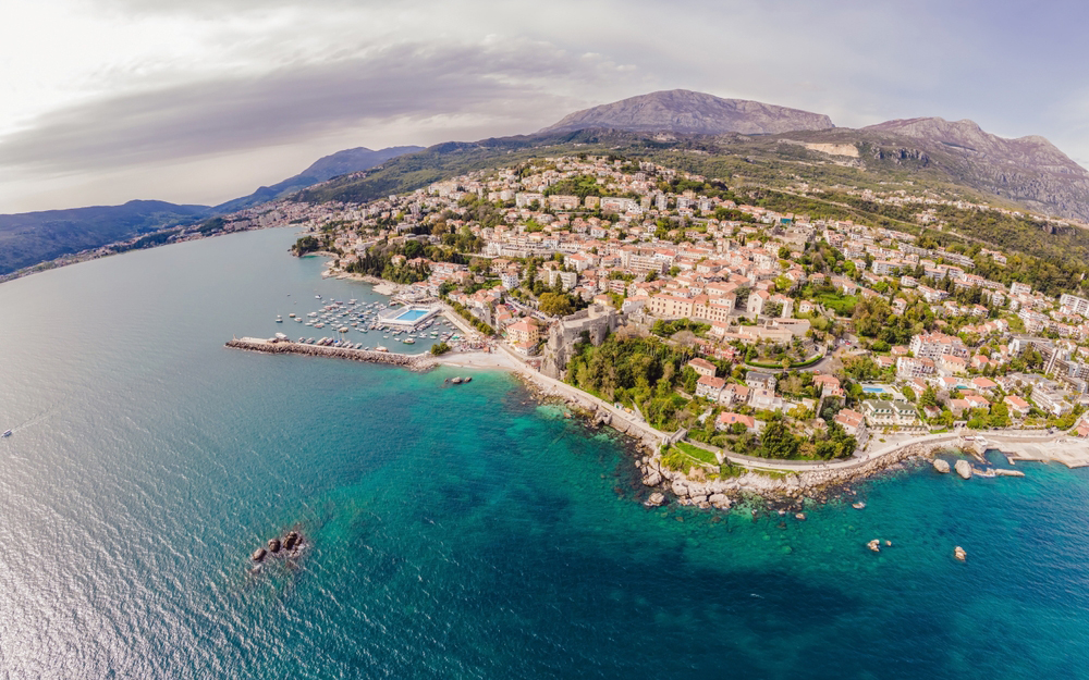 Игало, Черногория, Которский залив, вид на прибрежный город Герцег-Нови