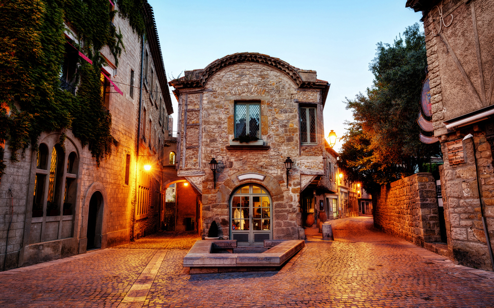 Каркассон, Франция, переулки во время заката