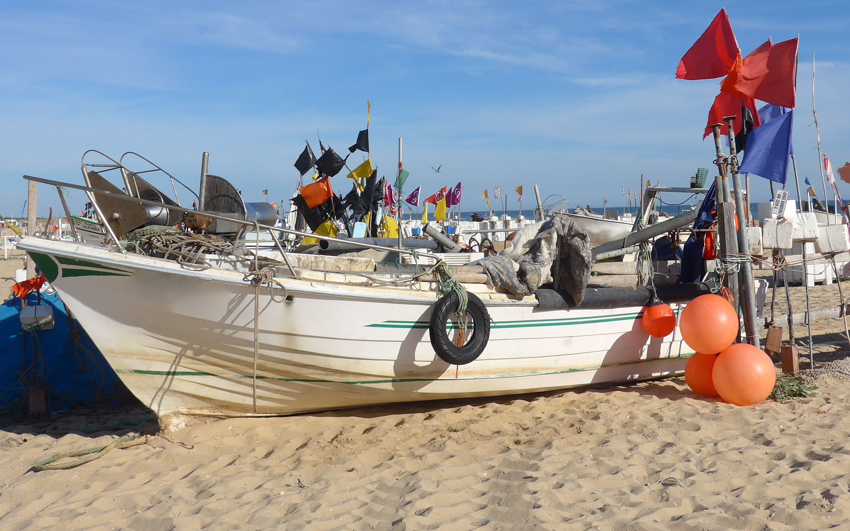 Монте-Гордо, Португалия, рыбацкая лодка на пляже anela