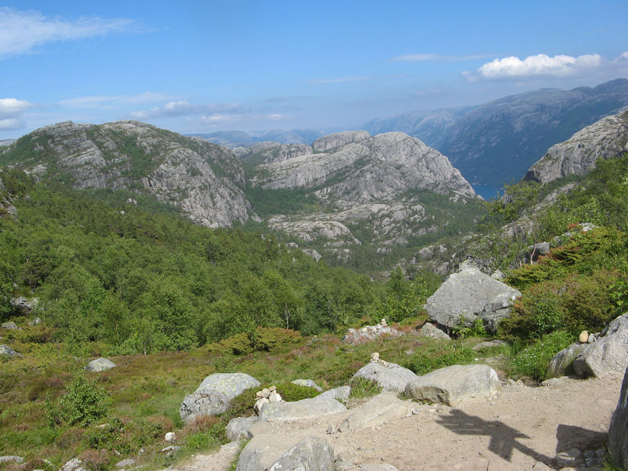 Вид с дороги на утес Прекестолен, Люсе-Фьорд, Норвегия Ольга Олешко