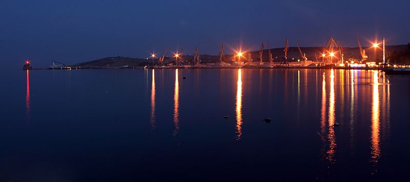 Феодосийский морской порт вечером Russianname, Wikimedia