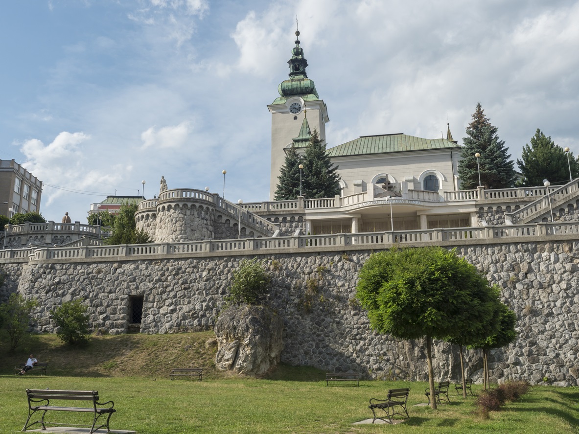 Вид на парк в старом центре города Ружомберок с барочной церковью Андрея Первозванного Kristyna Sindelkova, iStock