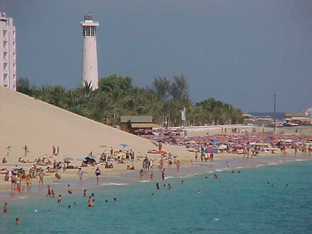 Пляж и маяк в Morro Jable, ФуэртевентураПляж и маяк в Morro Jable, Фуэртевентура