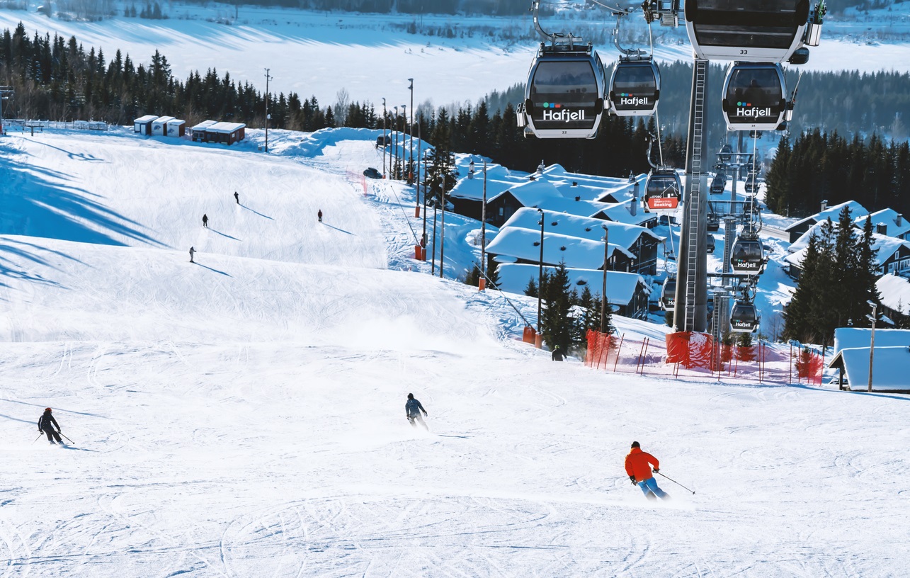 Горнолыжный курорт Хафьель с горными склонами, подъемниками и каютами HenrikNorway, iStock