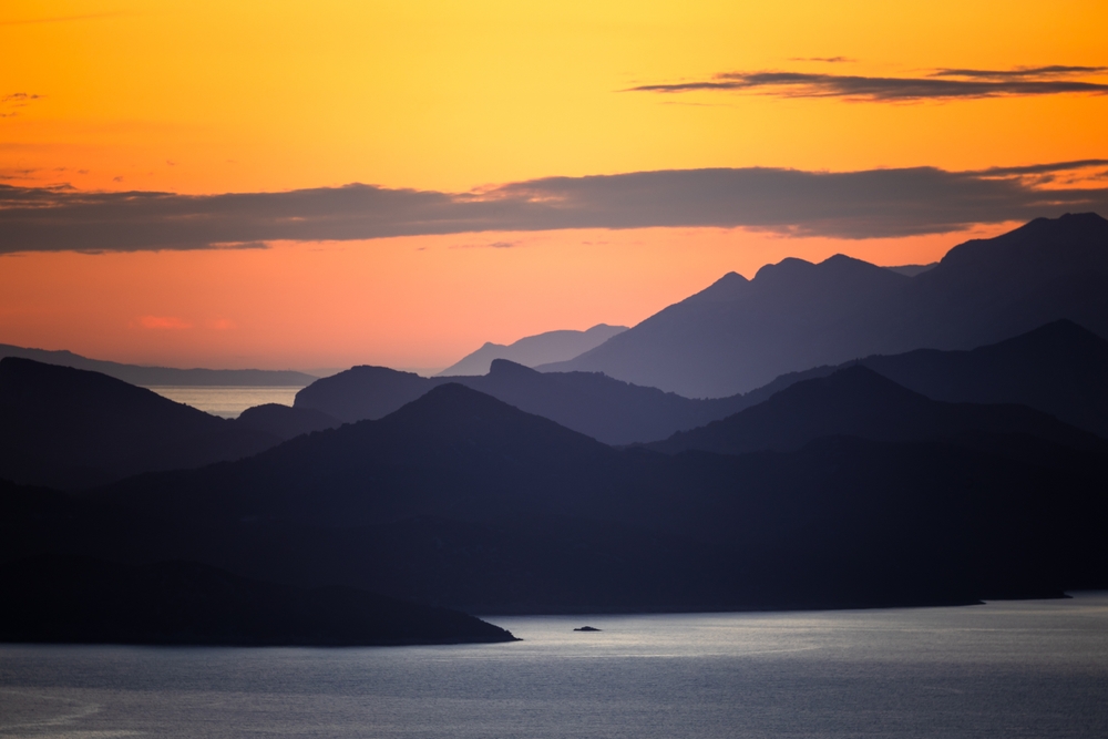 Колочеп, Хорватия, элафитские острова Колочеп, Лопуд, Шипан на закате