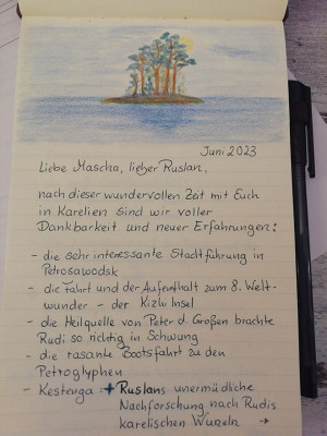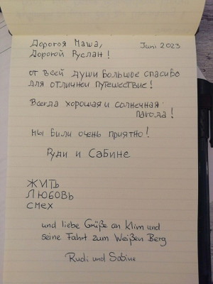 Путешествие Рудольфа и Сабине, июль 2023 Дорогая Маша, дорогой Руслан,после этого чудесного времени с вами в Карелии нас переполняет благодарность, мы так много всего повидали: