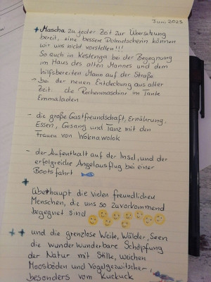 Ein lang ersehnter Wunsch wurde Wirklichkeit: Diese Reise führte uns bis zum Geburtsort von Rudi's Vater nach Kestenga/Kiestinki, in den Norden Kareliens. Begleitet und geführt von Mascha und Ruslan und unterstützt von Klim waren wir im Juni unterwegs, wir bestaunten die Holzkirchen auf Kischi, wir genossen das Heilwasser in Martsialnye Wody von Peter dem Großen und waren faziniert von den weiten Wäldern, der großen Stille,der karelischen06 июля 20231 -
